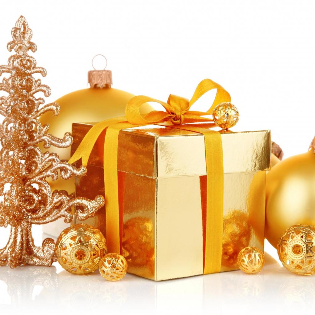 Wallpaper Golden balls , beads and gift