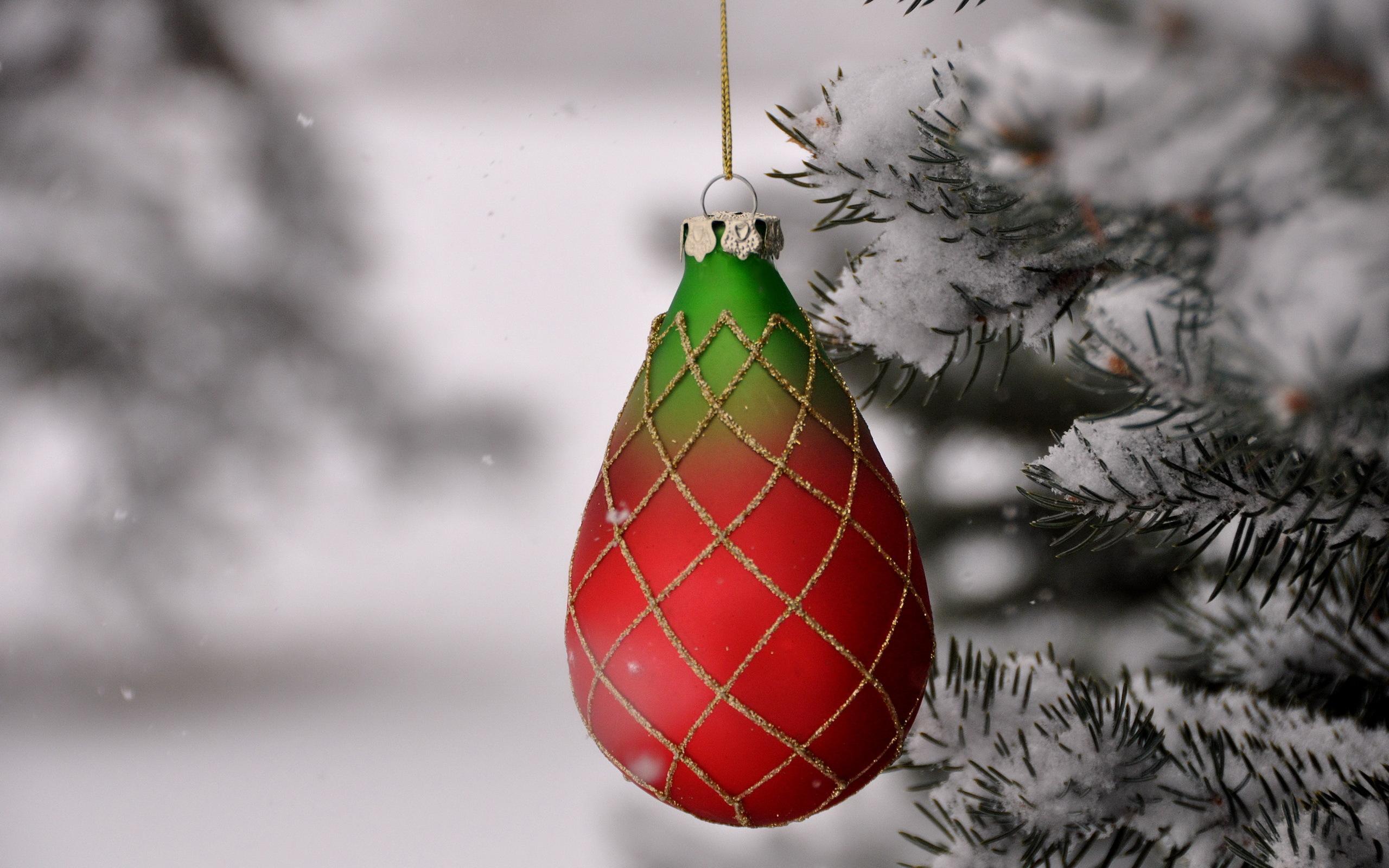Wallpaper Snow, Christmas tree, Macro, Christmas toys