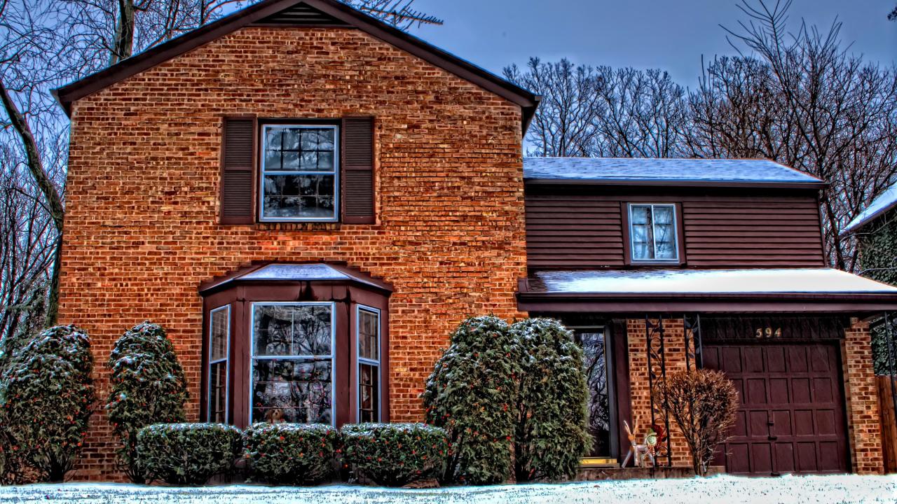 Wallpaper Beautiful Christmas tree with a variety of toys in snowy weather on Christmas