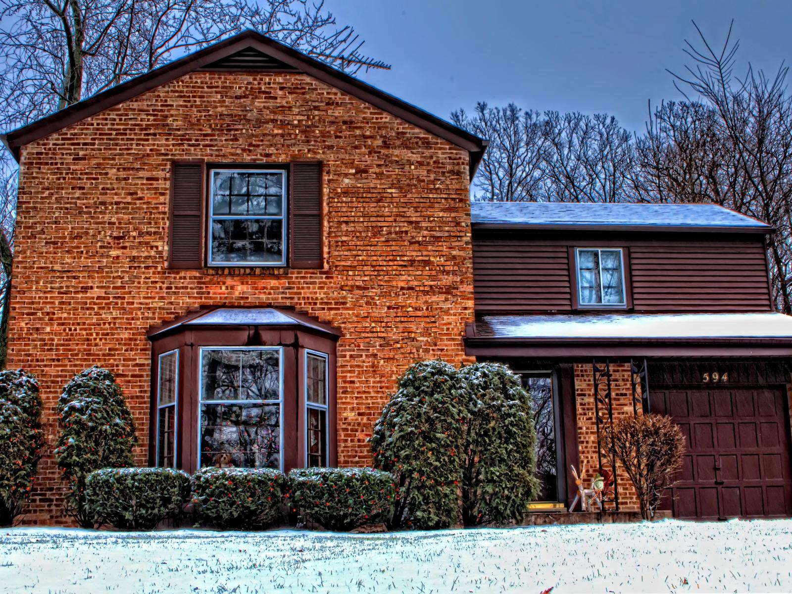 Wallpaper Beautiful Christmas tree with a variety of toys in snowy weather on Christmas