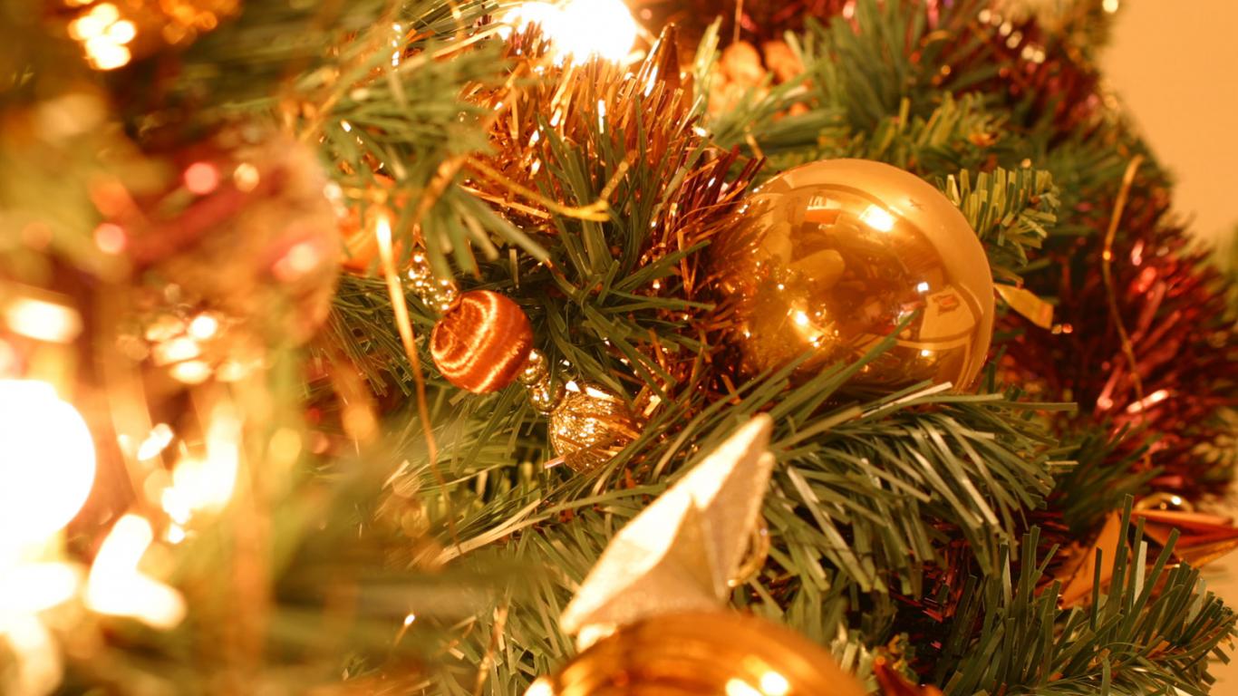 Wallpaper Christmas tree ball and small gift box on Christmas