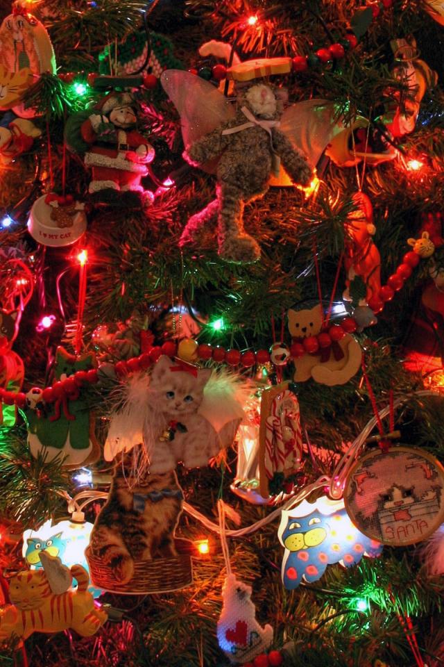 Wallpaper Beautiful Christmas tree with a variety of toys in snowy weather on Christmas