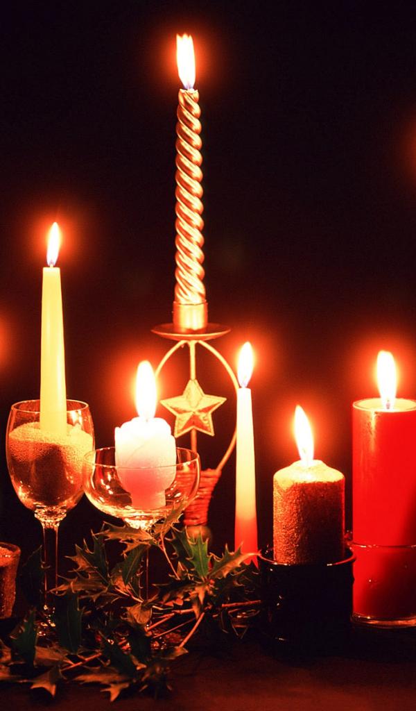 Wallpaper Balls and lights in the shape of a Christmas tree on Christmas