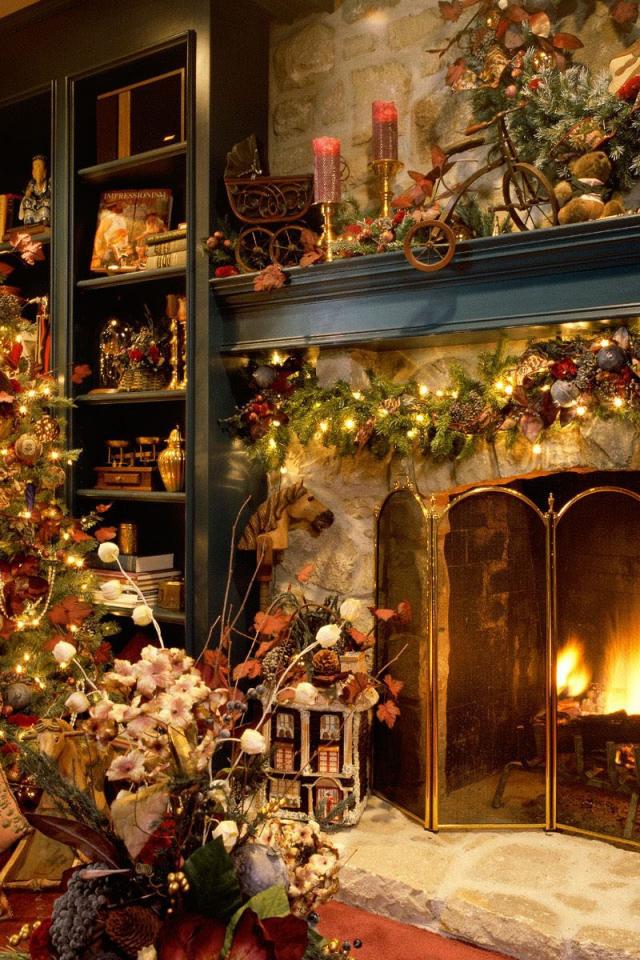Wallpaper Beautiful Christmas tree with a variety of toys in snowy weather on Christmas