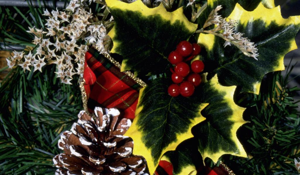 Wallpaper Beautiful Christmas tree with a variety of toys in snowy weather on Christmas
