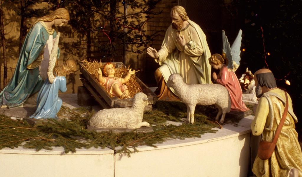 Wallpaper Beautiful Christmas tree with a variety of toys in snowy weather on Christmas