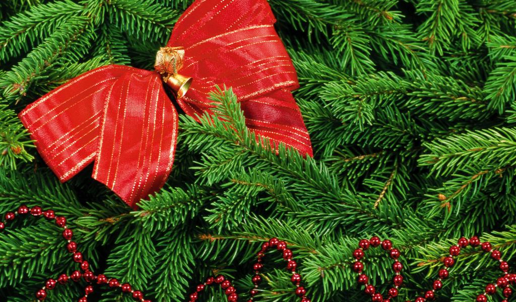 Wallpaper Ribbon and white Christmas tree balls on Christmas