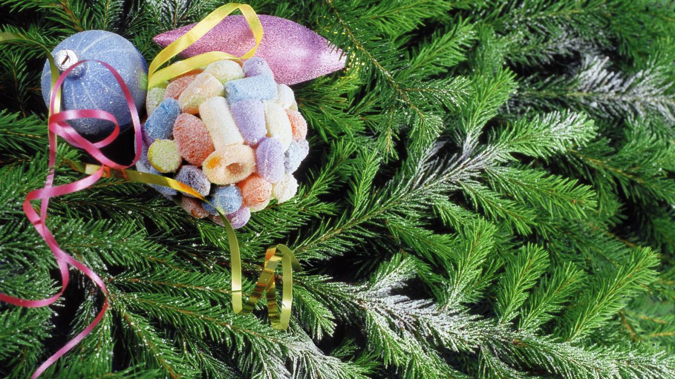 Wallpaper Ribbon and white Christmas tree balls on Christmas