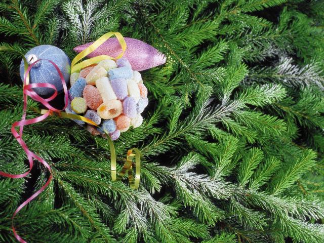 Wallpaper Ribbon and white Christmas tree balls on Christmas