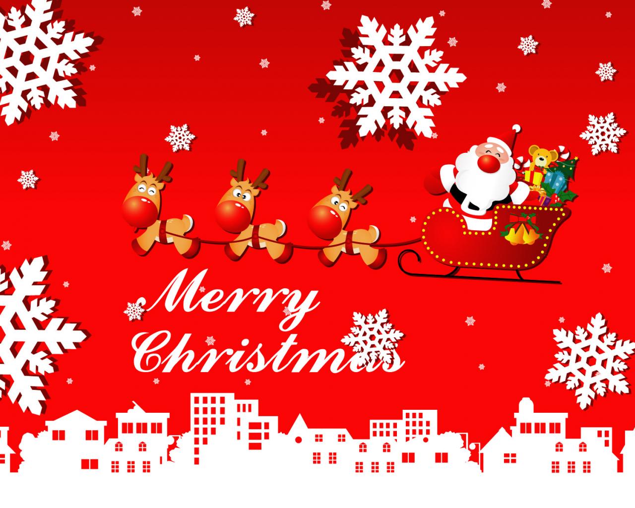 Wallpaper Gift, Red ribbon, A glass of champagne, Balls, Candles , Christmas tree, Santa Claus, Christmas toys, Christmas garland