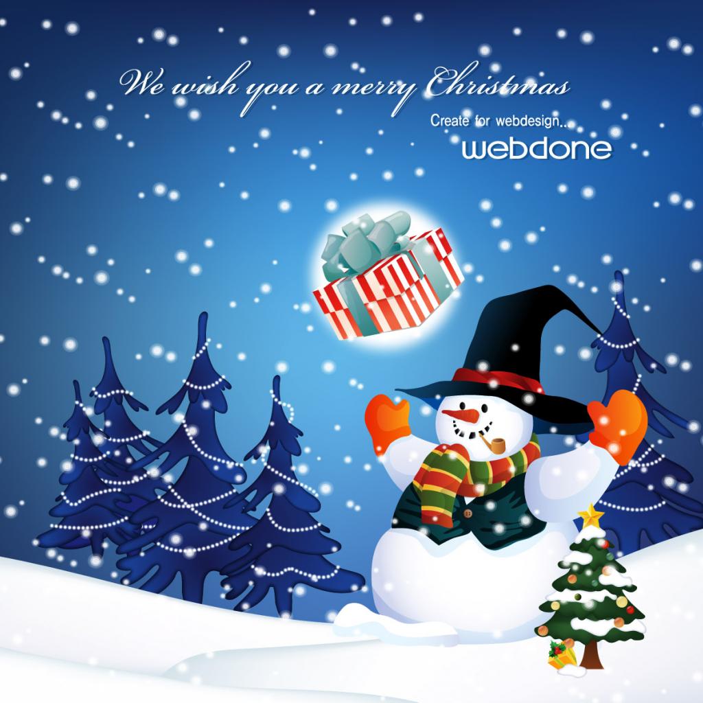 Wallpaper Cheerful snowman and Christmas tree decorations