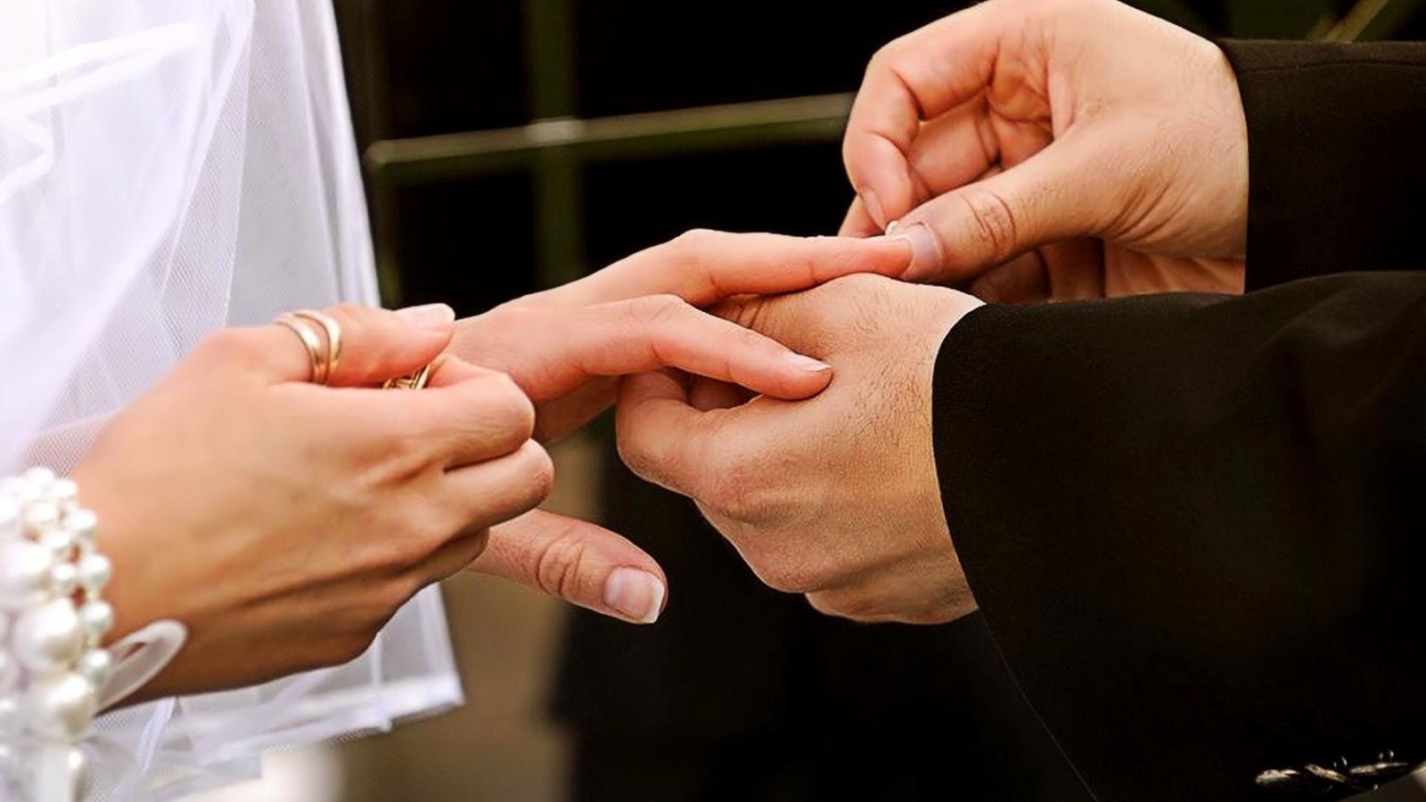 Wallpaper The groom puts the ring on the bride