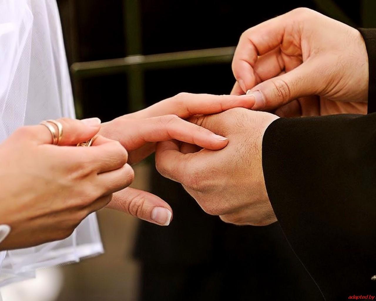 Wallpaper The groom puts the ring on the bride