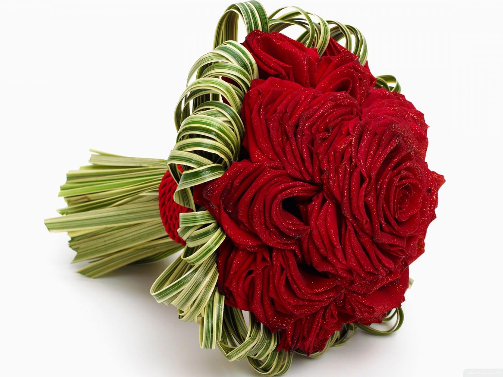 Wallpaper Red roses in a beautiful wedding bouquet
