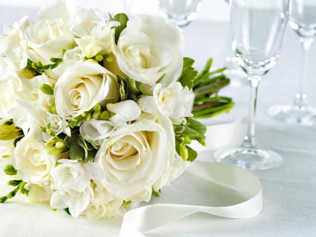 Wallpaper White roses in a wedding bouquet on the table