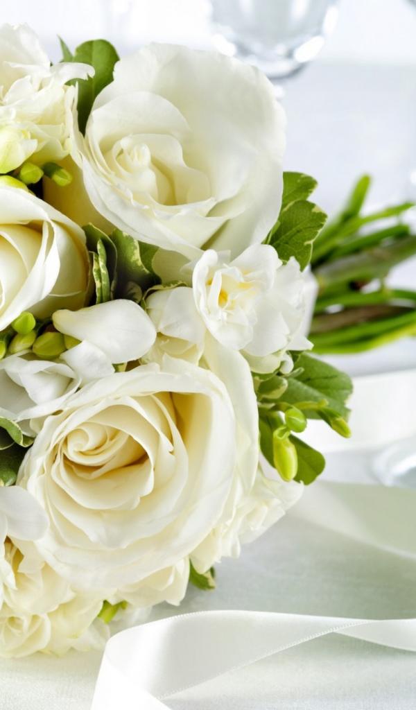Wallpaper White roses in a wedding bouquet on the table