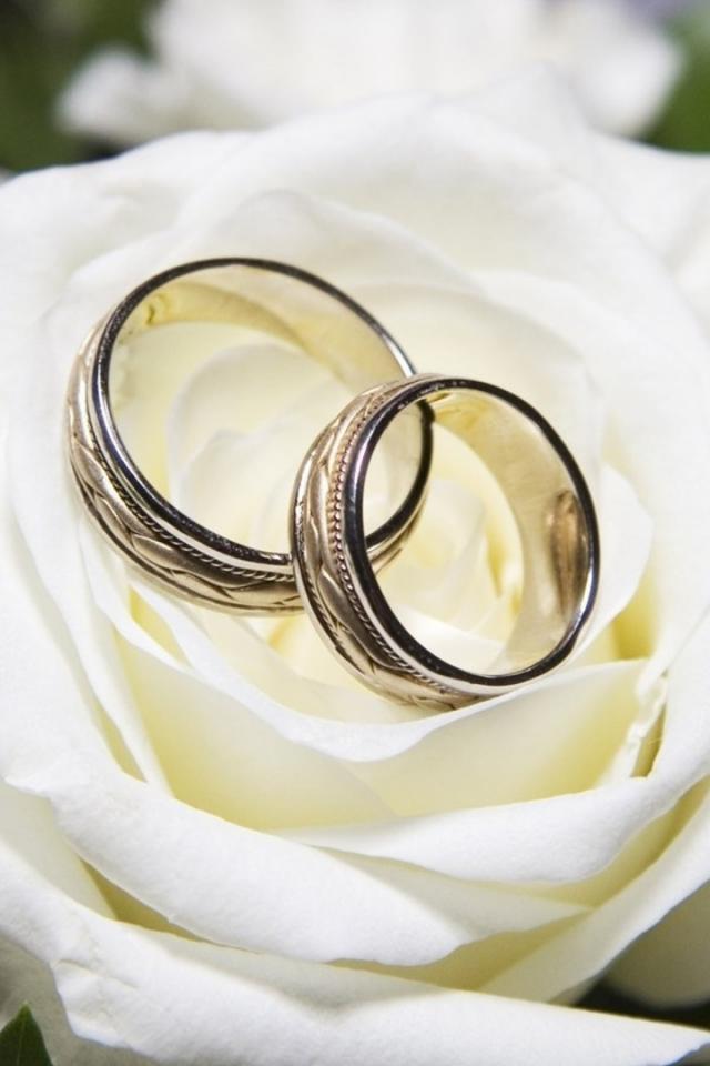 Wallpaper Beautiful white roses and wedding rings