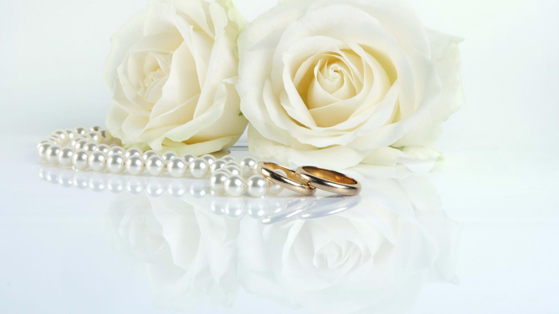 Wallpaper White roses and wedding rings