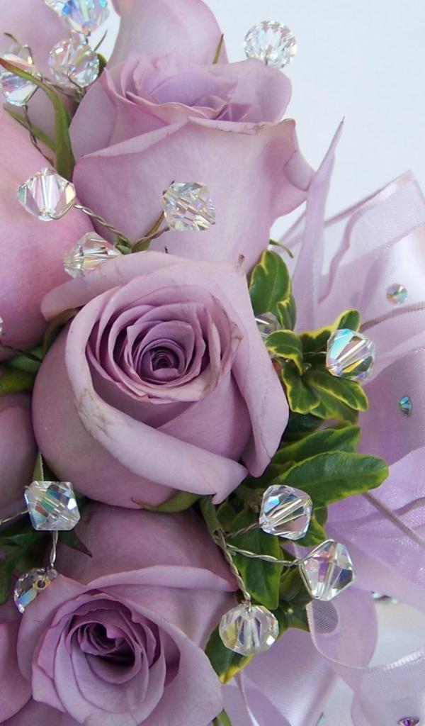 Wallpaper Purple roses in a wedding bouquet