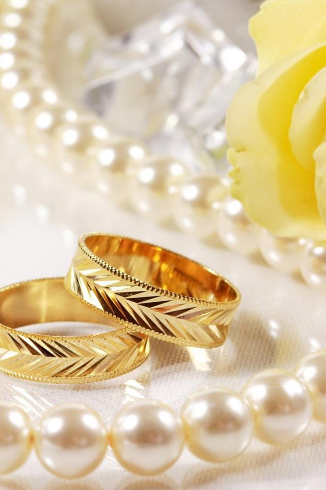 Wallpaper Wedding rings and yellow rose