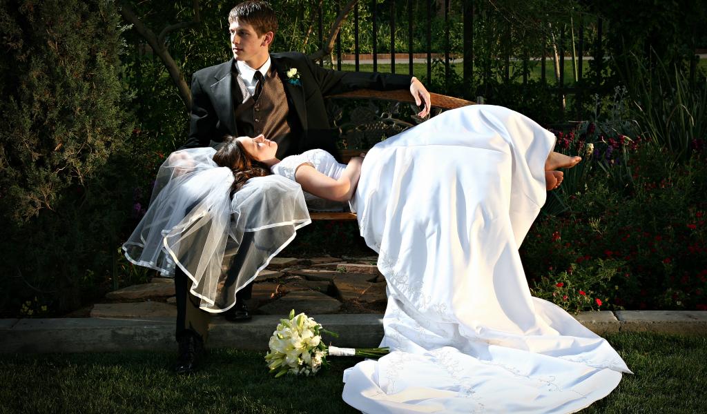 Wallpaper Love couple sitting on a bench in the anime Spice and Wolf