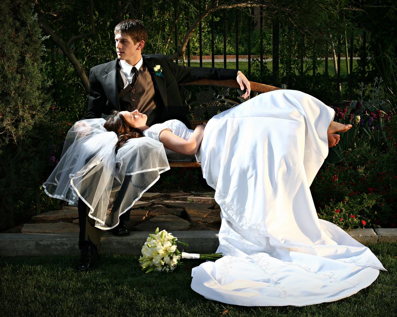 Wallpaper Love couple sitting on a bench in the anime Spice and Wolf