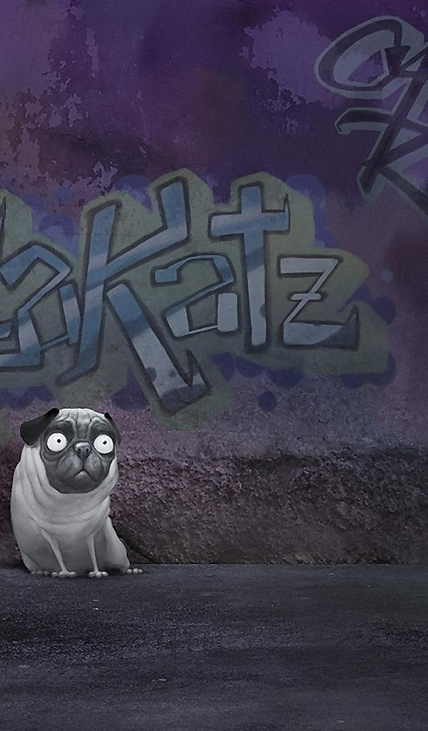 » Wallpaper The dog near the wall with the inscription