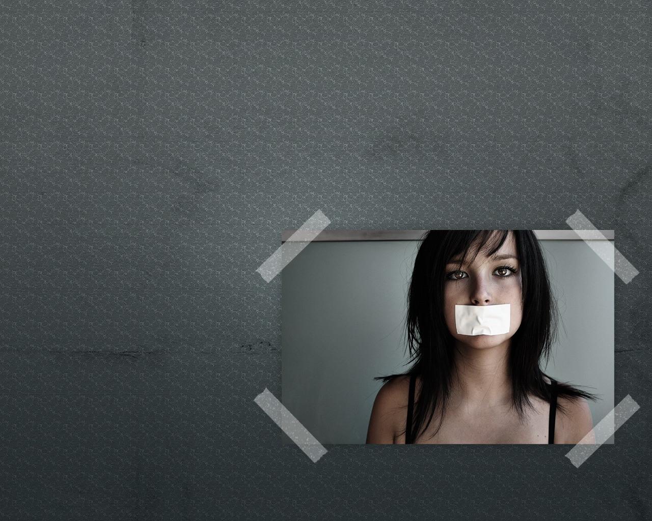 » Wallpaper A girl with a taped mouth