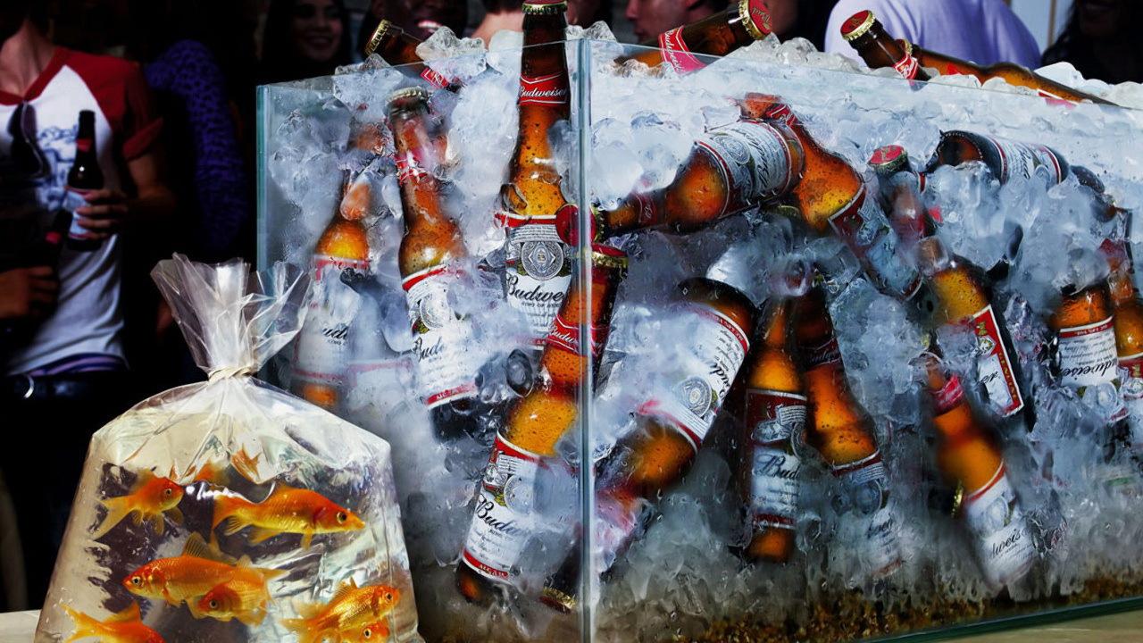 Wallpaper A man among the bottles of beer in the kitchen