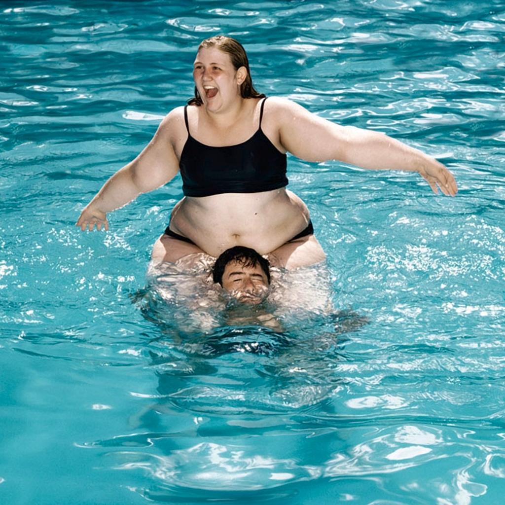 Wallpaper Girl standing in the water of the lake on the shoulders