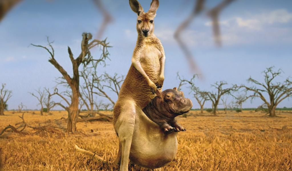 Wallpaper Kangaroo with Hippo bag