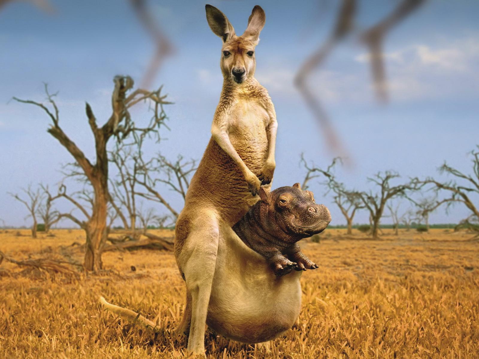 Wallpaper Kangaroo with Hippo bag