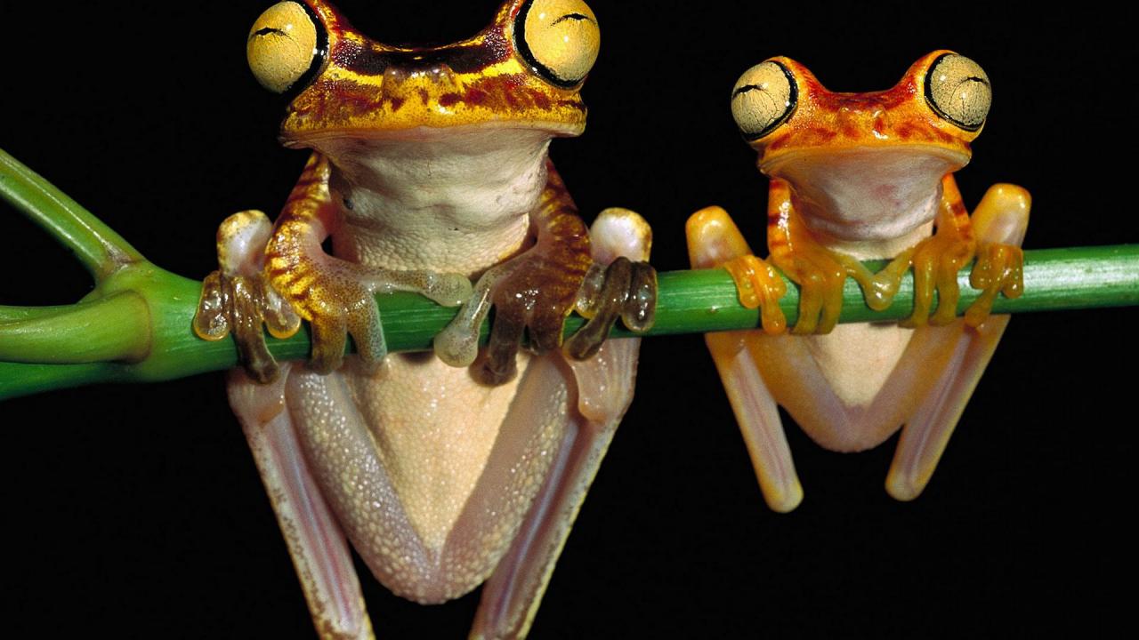 Wallpaper Frog hanging on a branch