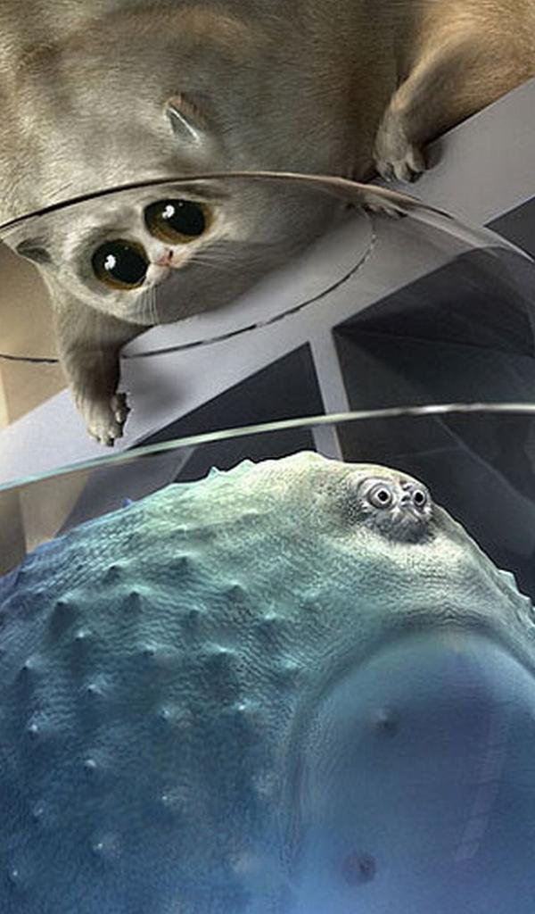 Wallpaper Fat cat and thick fish