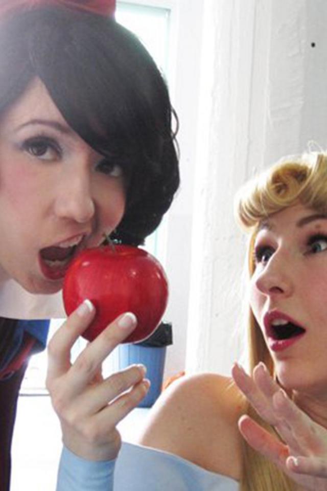 Wallpaper Brunette taking a bite of the Apple