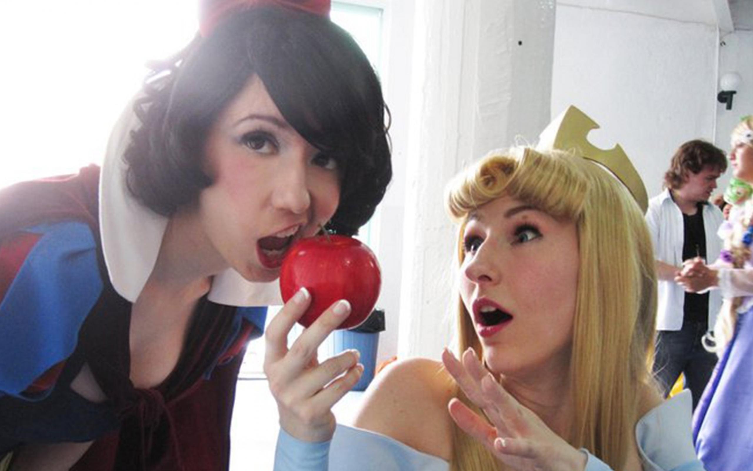 Wallpaper Brunette taking a bite of the Apple