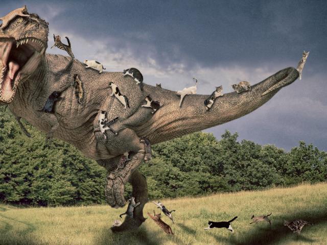 Wallpaper Cat on the Tyrannosaurus