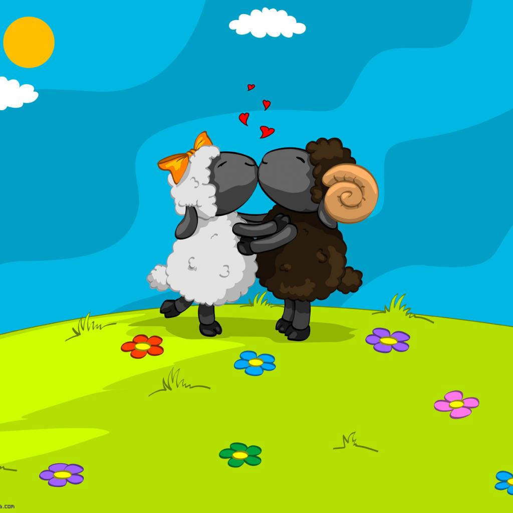 Wallpaper Sheep kiss