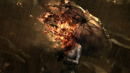 Wallpaper The girl was burned under the umbrella