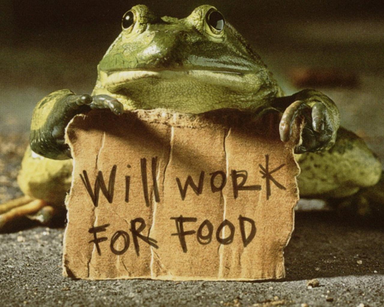 » Wallpaper Frog with a sign