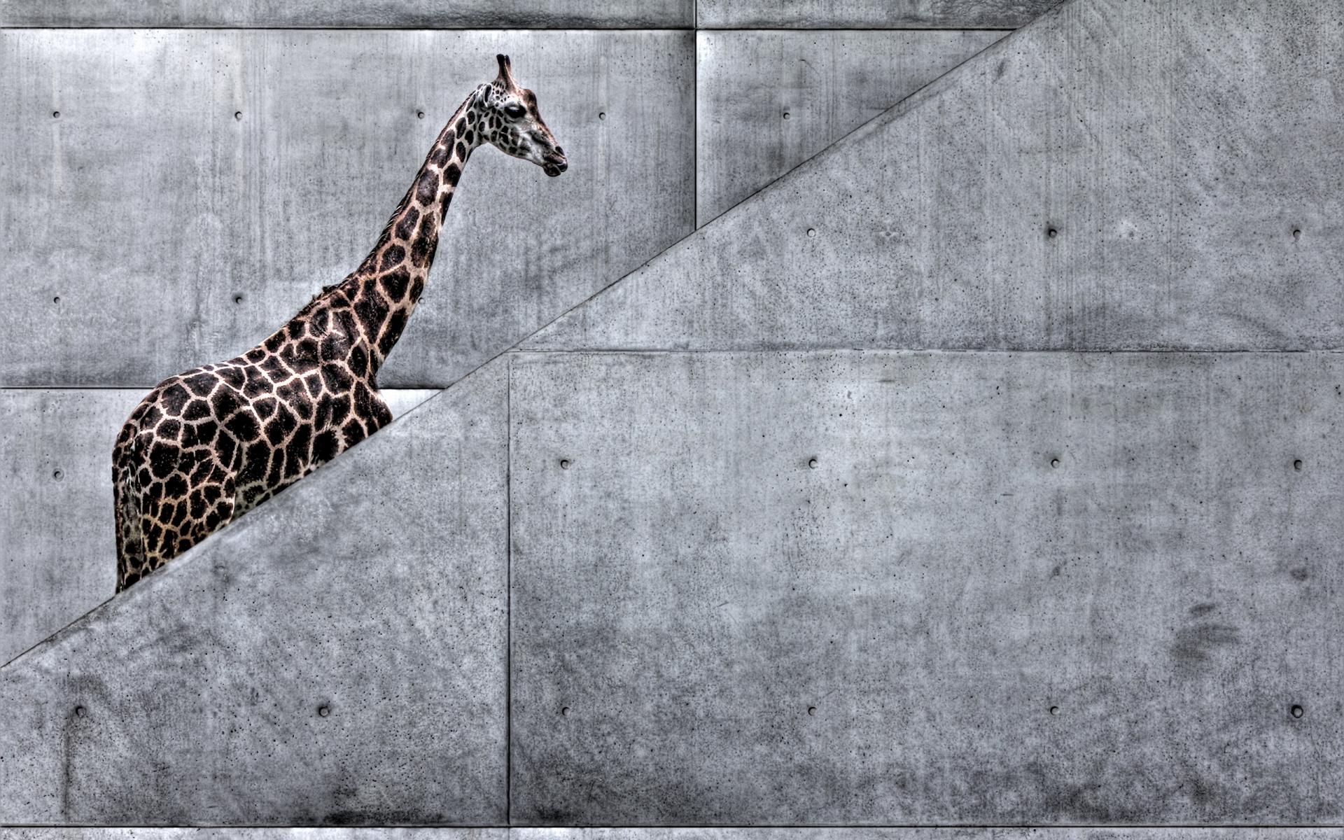 Wallpaper Giraffe on the stairs