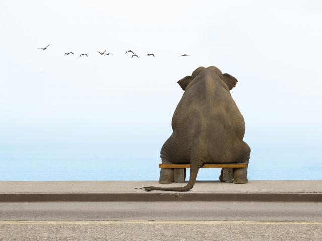 Wallpaper Elephant on a small bench