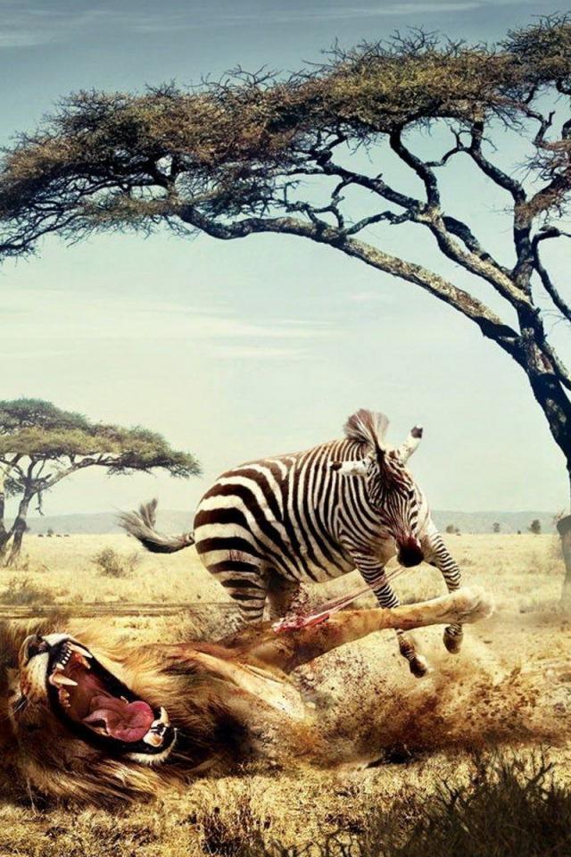 Wallpaper Zebra has hit upon lion