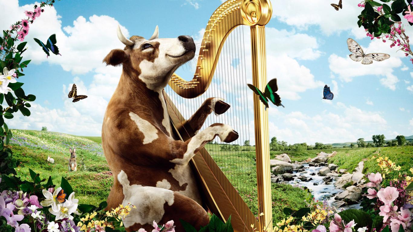 Wallpaper Cow with a harp