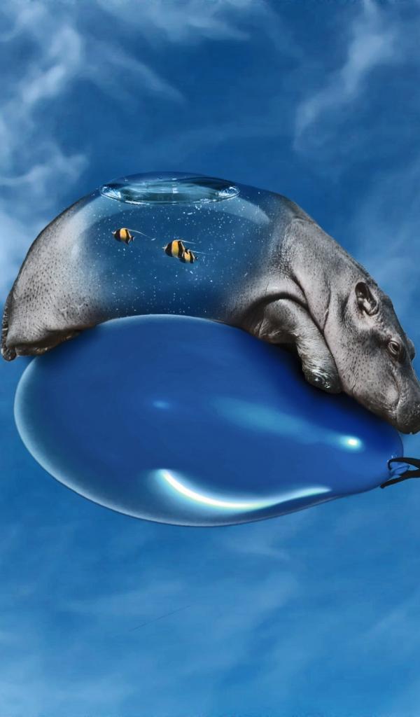 Wallpaper Flying hippopotamus
