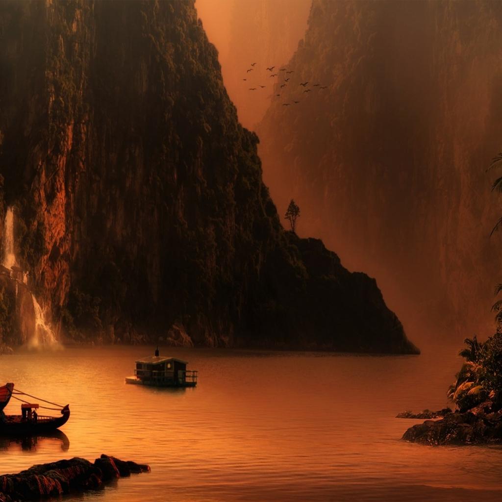 Wallpaper Cozy Harbor between verdant cliffs