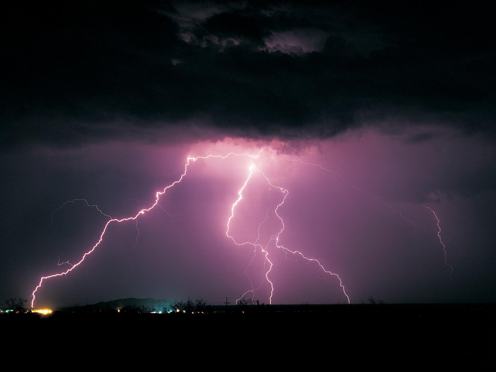 Wallpaper Pink Lightning black clouds