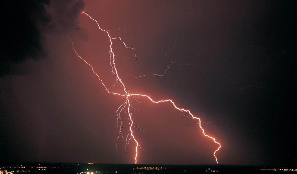 Wallpaper Orange lightning in the black sky