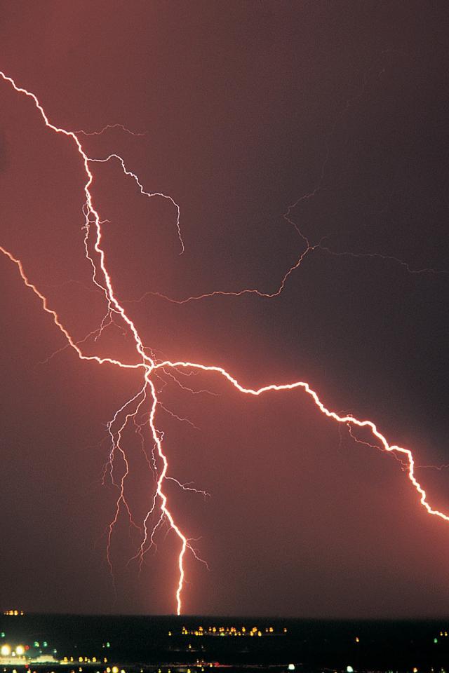 Wallpaper Orange lightning in the black sky