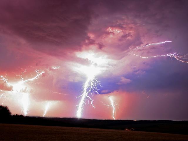 Wallpaper Powerful lightning in the pink clouds